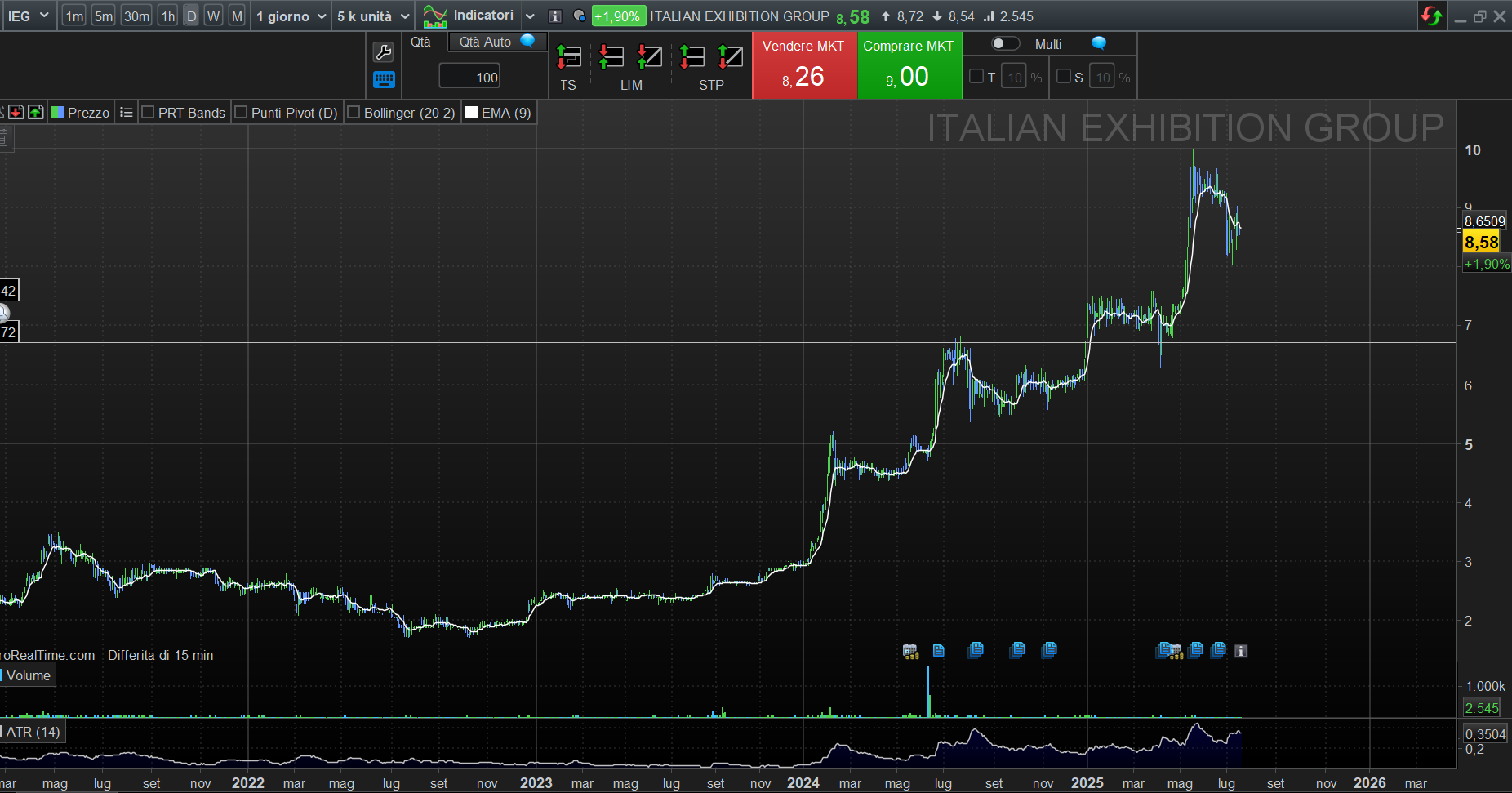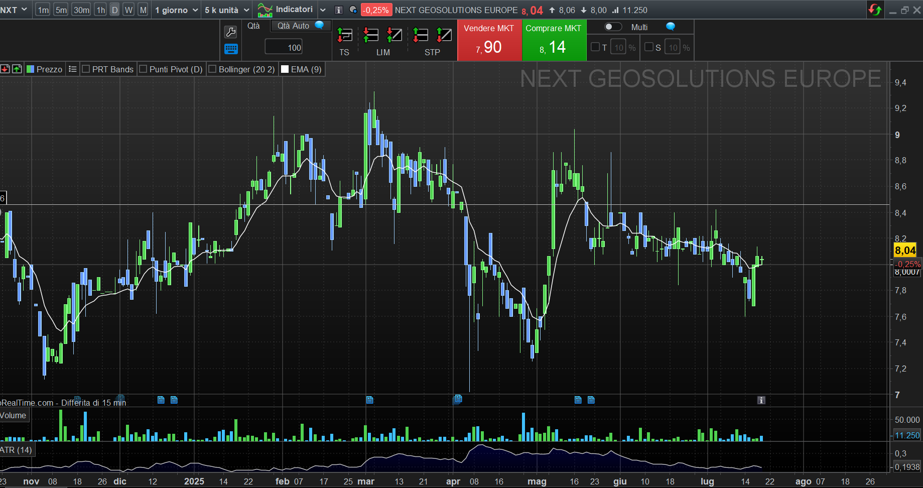 Stop Loss: Personalizzato, ma suggerito a €7.90 (-6% dall'entry).