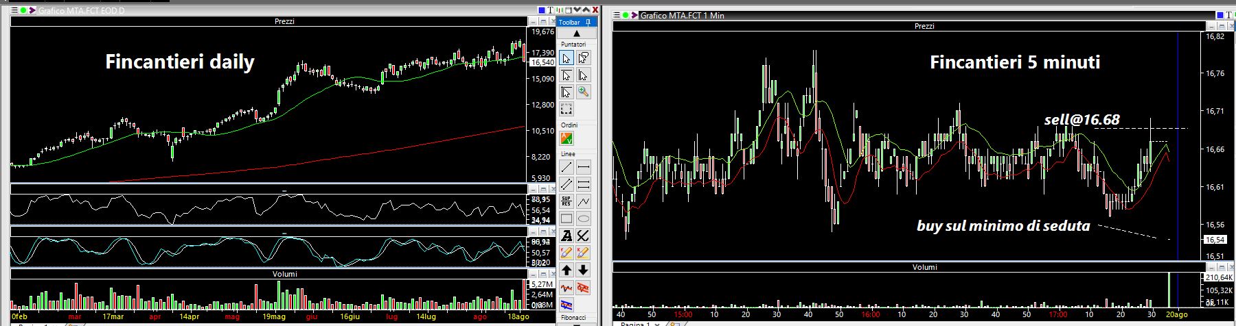 Sulla falsariga di Leonardo e sfruttando la stessa macchinetta ho aggiunto un sell su Fincantieri a 16,68 euro ricoperto a 16,54.....poca cosa rispetto a quanto fatto in giornata!