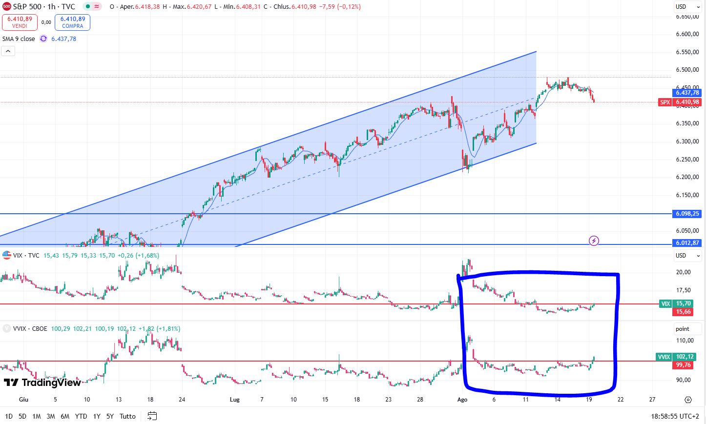 Detto questo sto osservando il mercato americano ed ho notato che la volatilità della volatilità è in risalita rispetto al Vix e mi domando: che non sia la volta buona per un pò di -salutare- ribasso? Meglio non farsi idee e vivere alla giornata, almeno per ora.
