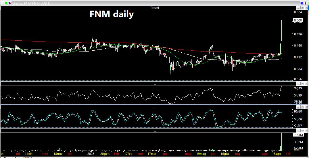 Torno dal nuoto, vado a casa per un pisolino e quando mi rimetto al pc nel tardo pomeriggio vedo una super chiusura di FNM.....e il giorno seguente +11% fino a superare abbondantemente 0,50 euro ad azione!!!! E guardate che volumi mai visti da un anno a questa parte! Quanto mi è costato fare sport?