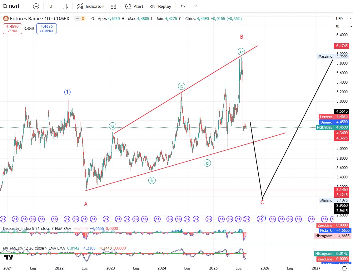 Il rame sta costruendo un movimento correttivo in contro trend che una volta concluso dovrebbe dare la stura ad una nuova gamba di ribasso.