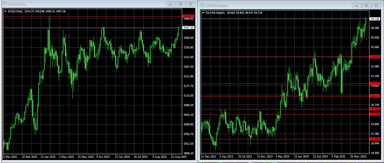 Infine come non segnalare il comportamento recente di oro e argento: il primo si è riportato sui massimi ed il secondo rimane inserito in un canale rialzista, ma ad entrare ora si fa fatica. Certamente l'ipotesi che i tassi a lungo rimangano mediamente piuttosto alti e che il dollaro possa continuare a perdere terreno per le politiche trumpiane non possono che favorire questi due asset.
