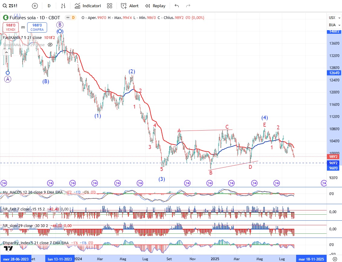 Sulla soia siamo circa a metà dello sviluppo di onda (5). Poi si andrà al rialzo.