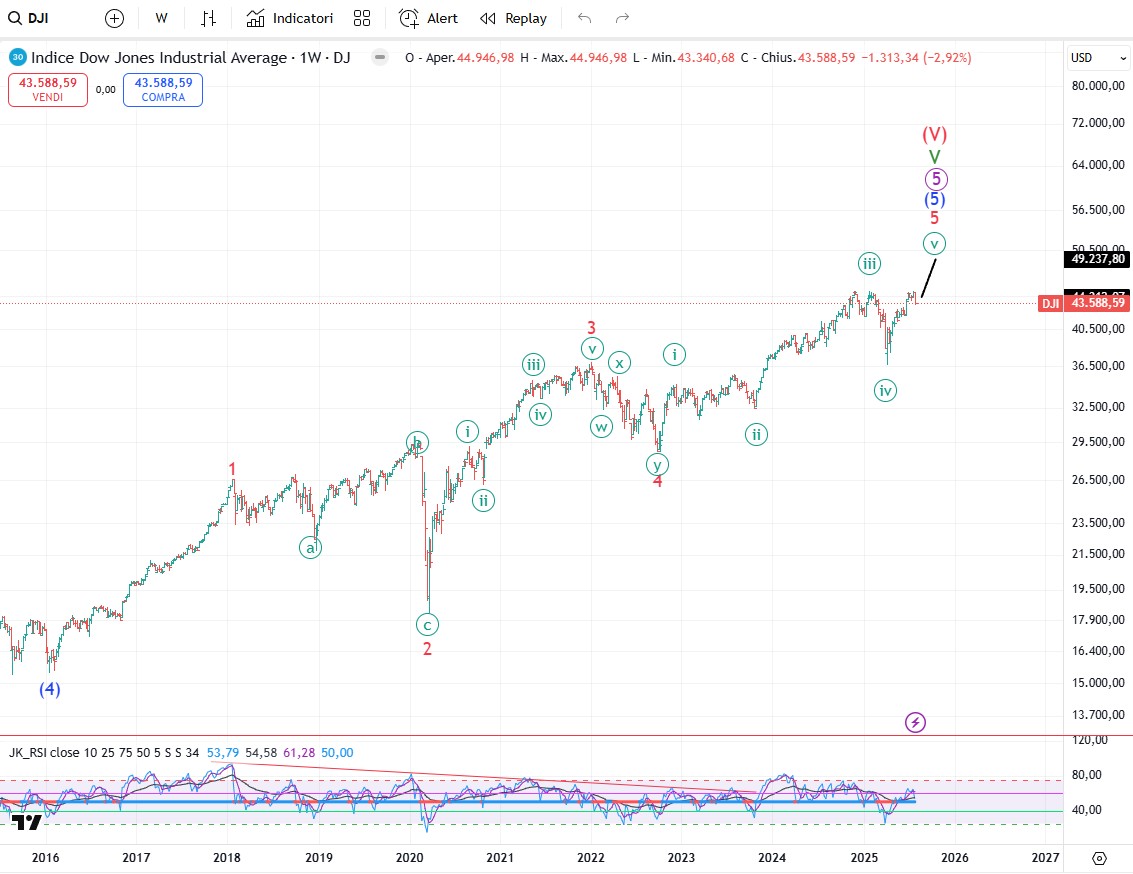 I mercati azionari americani rimangono fortemente frammentati. L’S&P500 e il NASDAQ100 hanno raggiunto nuovi massimi mentre il Dow Jones Industrial Average è prossimo a un nuovo massimo, ma non l’ha ancora raggiunto né in intraday né in chiusura in nessun modo. Se la prossima settimana non riesce a farlo e riallinearsi agli altri due indici si rischia un micidiale triplo massimo. Gli altri indici (Dow Jones Transportation Average, Russell 2000, l'S&PMidCap 400, l'S&P Small Cap 600 e il Value Line Composite sono tutti ben al di sotto dei rispettivi picchi di novembre 2024. Con la divergenza dei trend dei principali indici azionari, la frenesia speculativa si è trasformata in un'ondata ulteriore di slancio rialzista. Il completamento del rally del mercato azionario porterà al più grande mercato ribassista che si sia visto da oltre una generazione. Gli spread creditizi rimangono storicamente ristretti, a dimostrazione di un notevole livello di compiacimento degli investitori. La prossima mossa significativa sarà un ampliamento degli spread e un'impennata della volatilità del mercato. L'oro sta parzialmente ritracciando il suo precedente rialzo. Una volta completata la correzione, l'oro salirà a fare nuovi massimi. Anche l'argento e il Platino stanno parzialmente ritracciando i loro rialzi di aprile-maggio. Anche in questo caso, una volta completato il ritracciamento, l'argento e il platino saliranno a fare nuovi massimi. Da notare poi che sia l’argento che il platino per la prima volta dopo molti anni hanno sovraperformato rispetto all’oro e ci sono già diversi analisti e report che dicono che l’argento potrebbe esplodere e raggiungere quotazioni stellari. Staremo a vedere ma di certo quelli che tra il 2009 e il 2012 seguendo gli articoli miei e di Bellosta hanno messo da parte dell’argento fisico non si faranno cogliere impreparati potendo acquistare altro argento cartaceo, iniziando parallelamente ad alleggerire le scorte di fisico qualora si sfondasse il tetto dei 100$. Il Dollar Index dovrebbe aver terminato la fase ribassista e sta iniziando il rally più ampio dal massimo di settembre 2022.
