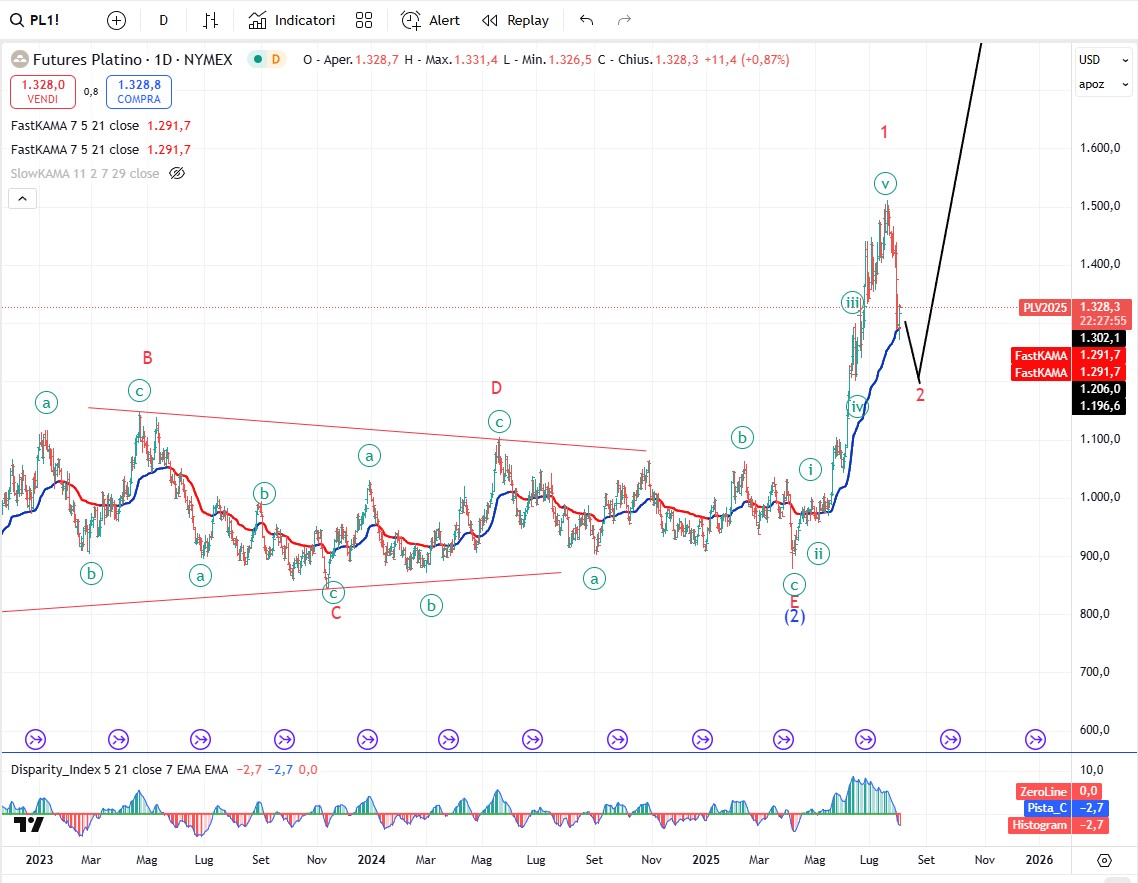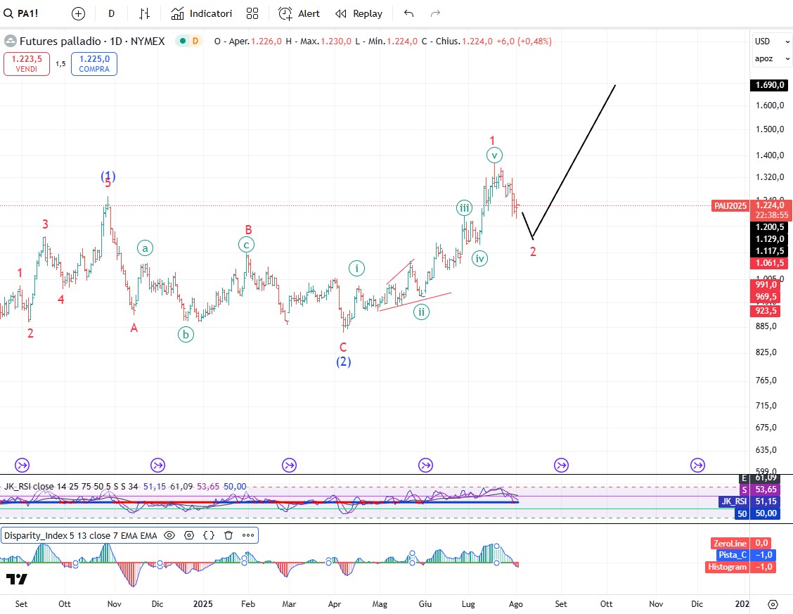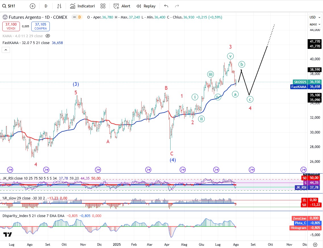 Sui metalli preziosi non c’è molto da aggiungere a quanto ho detto in testa a questo report. Bene o male tutto il comparto una volta concluse le correzioni in atto andrà al rialzo. Sotto i grafici.