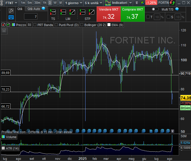 | Fortinet | 66$ | 90$ | Rimbalzo ad ora 70$ |