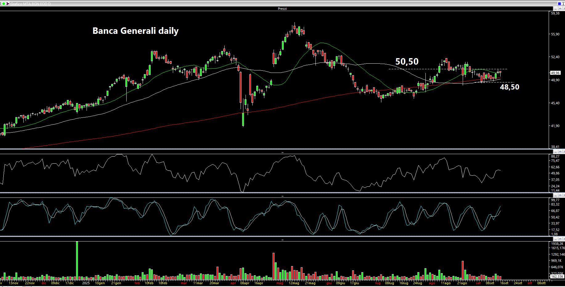 Un paio di settimane fa è entrato lo stop, ma se riuscisse a riportarsi sopra i 50,50 forse colmerebbe il gap con le altre banche che sono ripartite (o così pare). Nel caso stop a 48,50.