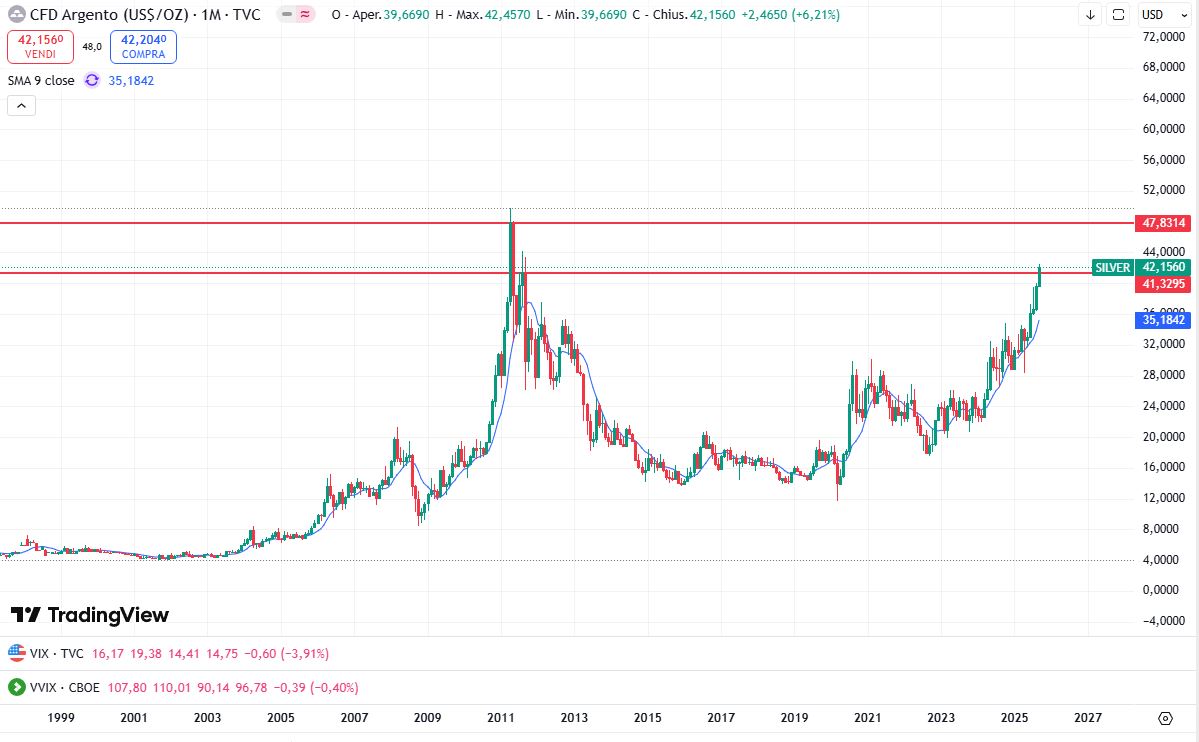 A vederlo così pare diretto verso i 47 dollari (grafico su scala mensile e siamo a metà mese, quindi l'ultima candela è in divenire).