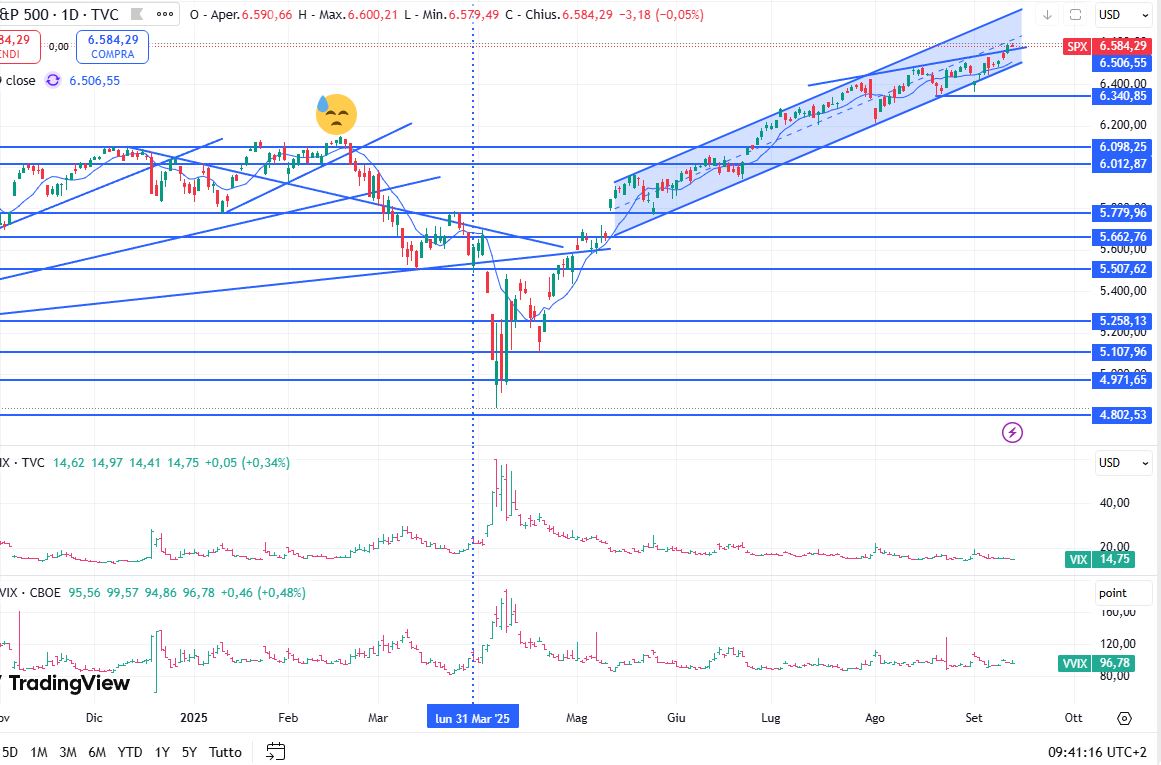 Negli Stati Uniti, dopo il test della trendline dinamica ascendente individuato un paio di settimane fa, il mercato ha trovato la forza per continuare a salire -con una volatilità sostanzialmente assente-. Finché si rimane sopra i 6500 il semaforo rimane verde.