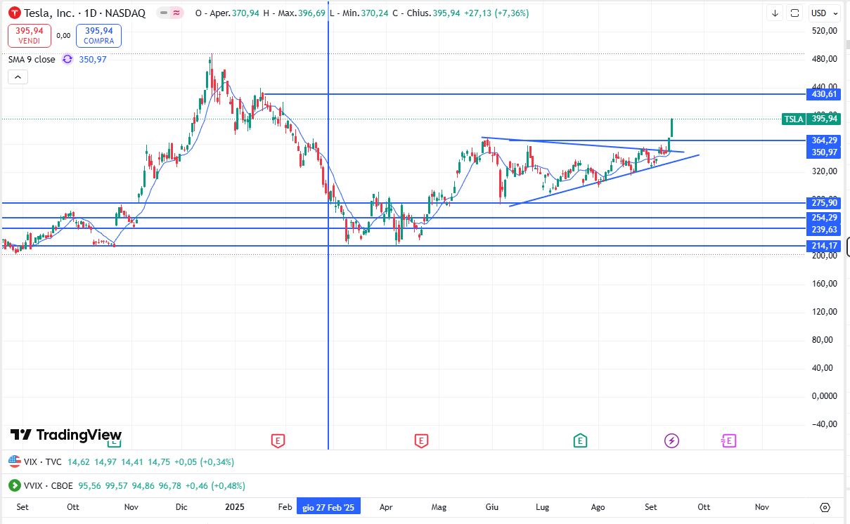 E pensare che volevo inserirla in watchlist la scorsa settimana....Fatto sta che ieri ha rotto una forte resistenza statica in area 364-370 $. Prossima resistenza attorno a 430 dollari che più o meno è l'altezza del triangolone dal punto di rottura. Grafico ben impostato al rialzo a condizione che non rientri sotto i minimi di giovedì (punto di rottura del triangolo).