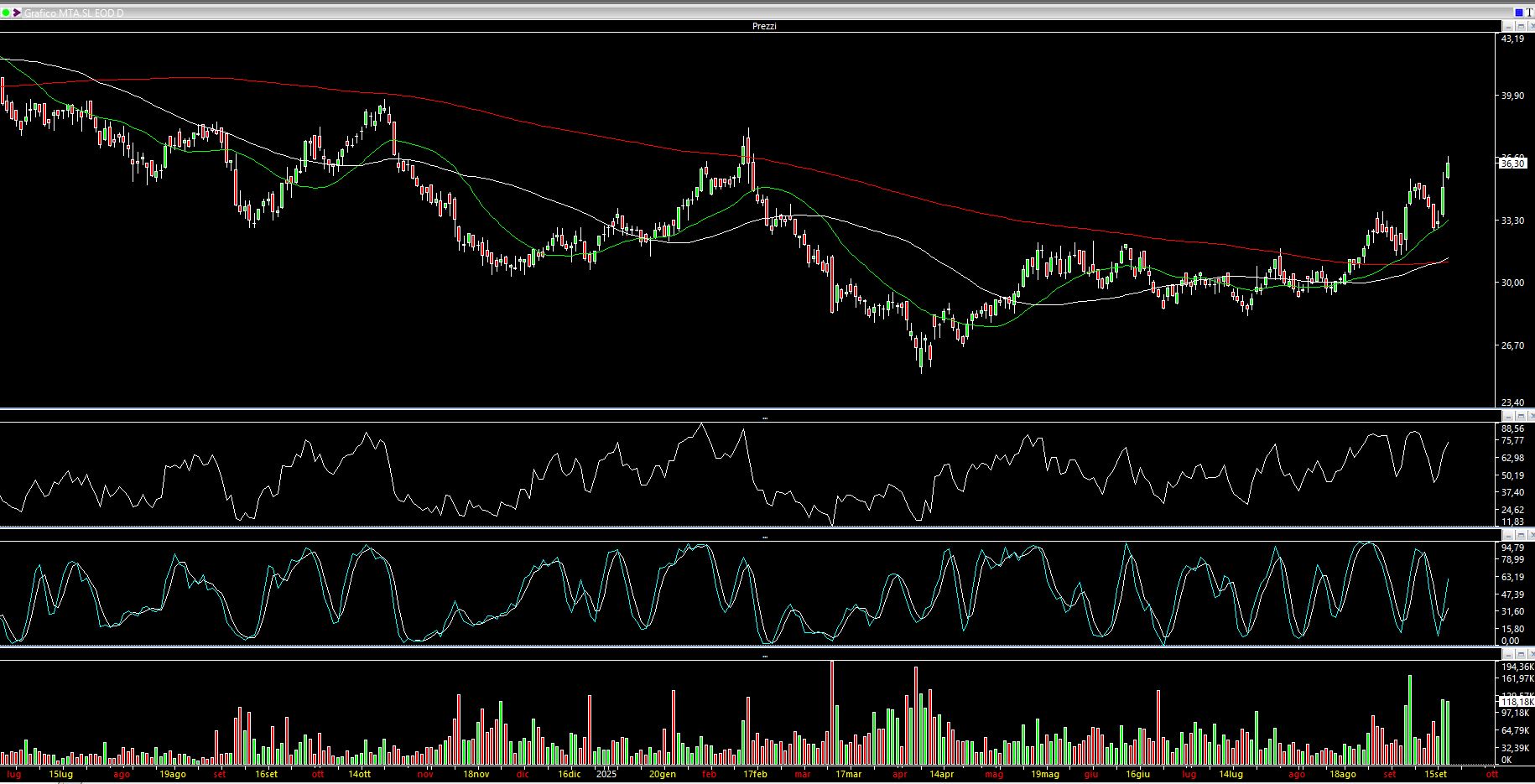 Ottimo rialzo da 33 a 36 euro abbondanti. Spesso capita che le azioni vengano comprate massicciamente un giorno, poi da quello successivo cadono apparentemente nell'oblio e poi....chi aveva comprato immette improvvisamente e nuovamente liquidità e così il titolo vola. Come sempre non c'è nulla di scritto nella pietra e quindi day by day è importante seguire l'evoluzione dell'operazione in essere proprio perché il mercato muta quotidianamente la sua essenza.