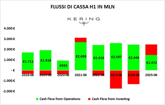 In sintesi, i grafici raccontano una storia a due velocità: da un lato Gucci, in forte deterioramento, dall’altro Bottega Veneta, Saint Laurent ed Eyewear che riescono a contenere o persino migliorare la redditività. Questo squilibrio resta oggi il nodo principale per KERING.