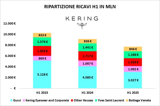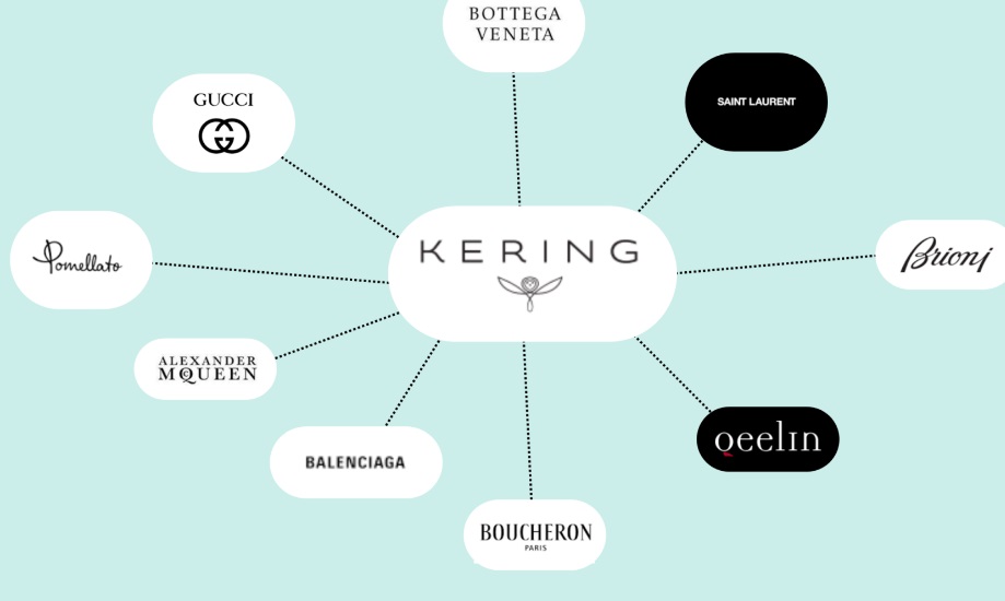 La holding francese, presieduta da François-Henri Pinault e guidata operativamente da Luca de Meo in qualità di CEO, controlla marchi iconici come Gucci, Saint Laurent, Bottega Veneta, Balenciaga, Alexander McQueen, Brioni, Boucheron, Pomellato, Qeelin, Ginori 1735, oltre a Kering Eyewear e Kering Beauté.