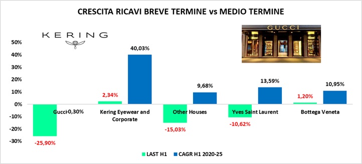 Gucci è ancora il tallone d’Achille del gruppo, con curve che segnano cali drastici.