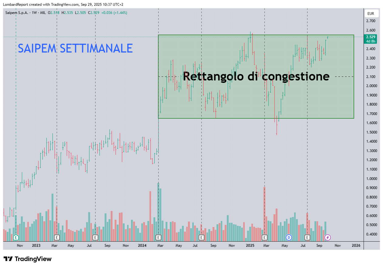 SAIPEM: l’azione Saipem sta diventando interessante. Sono sempre stato CONTRO questa azione perché al di là di ogni valutazione fondamentale tecnicamente era impostata pesantemente al ribasso. Ma ora si fa fatica a non riconoscere un enorme bottom up. Tecnicamente ora sta costruendo un rettangolo e se lo rompe rischiamo di vederla davvero impostata in un trend al rialzo che ci può portare lontano. A livello patrimoniale la situazione è tranquillizzante mentre in termini di crescita della redditività siamo sulla buona strada e il p/e che piace tanto al mondo è tutto sommato contenuto.