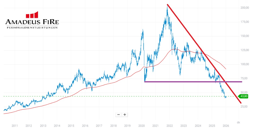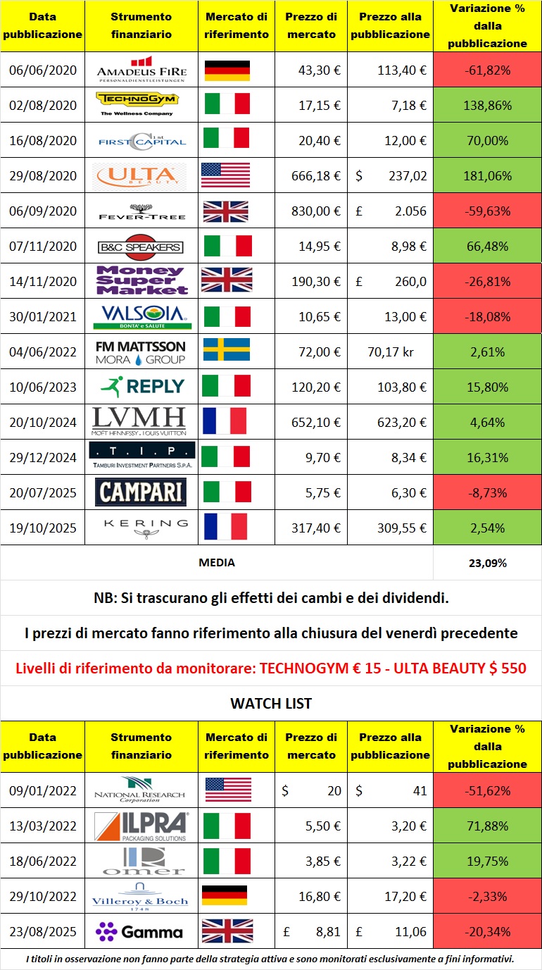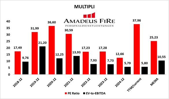 Il titolo AMADEUS FIRE ha scontato in modo significativo il downgrade degli utili e l’assenza di catalizzatori di breve periodo. Le quotazioni si collocano su livelli compressi, coerenti con uno scenario di utili depressi.