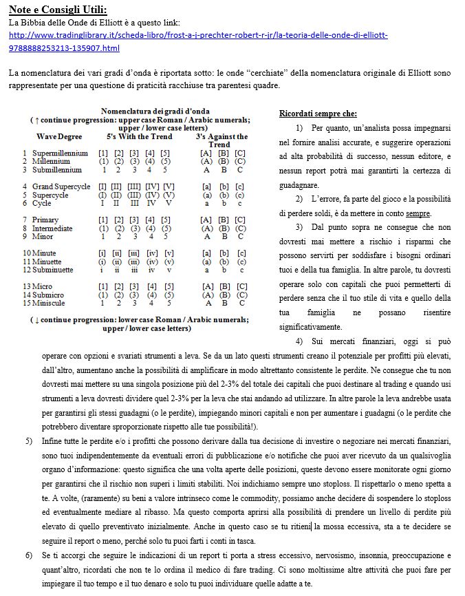 L’S&P500 sta completando un ending-diagonal. I sacri testi vorrebbero uno sforamento verso l’alto e un ritorno ad attraversare la figura verso il basso e una volta rotta la trendline inferiore una rasoiata che riporti in pochissimo tempo i prezzi all’origine, ovvero al livello di prezzo da cui ha iniziato a svilupparsi la figura. Dopo fuori dalla teoria il mercato in realtà farà come vuole e se decide che vuole salire ancora, lo farà.