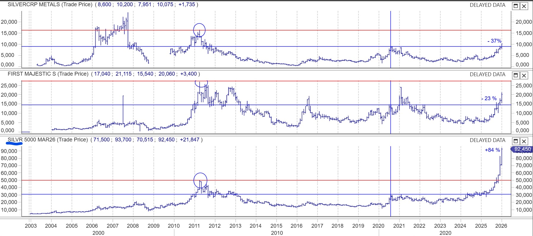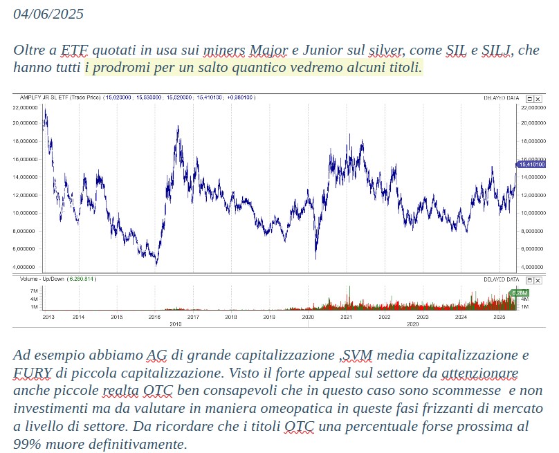 Si era insistito ( a Giugno 2025 come si evince nelle immagini sopra) in particolare sulla redditività dei miners e sui volumi molto elevati che avevano caratterizzato tutti i titoli del settore negli ultimi 3–6 mesi. Oggi, 15 gennaio 2026, tutti parlano di preziosi e del forte rialzo dei miners: ma è davvero così, o siamo soltanto all’inizio di un movimento potenzialmente ancora più poderoso , visto che da Giugno moltio titoli sono ben piu che raddoppiati?