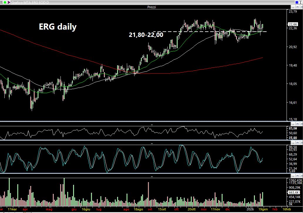 Area di congestione sui massimi. Finchè rimane sopra 22 euro, in assenza di notizie, può continuare nella salita.