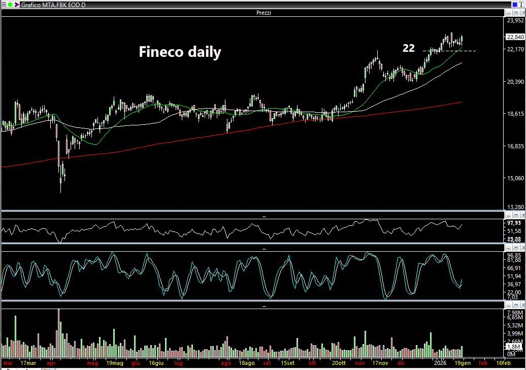 Finché rimaniamo sopra 21,80-22,00 euro può accumulare e puntare nuovamente al breakout dei massimi.