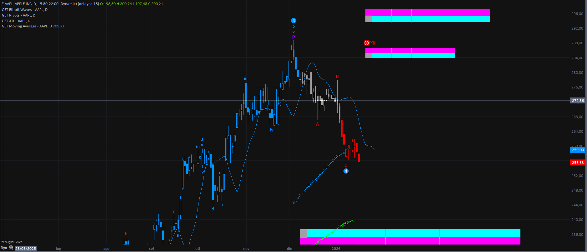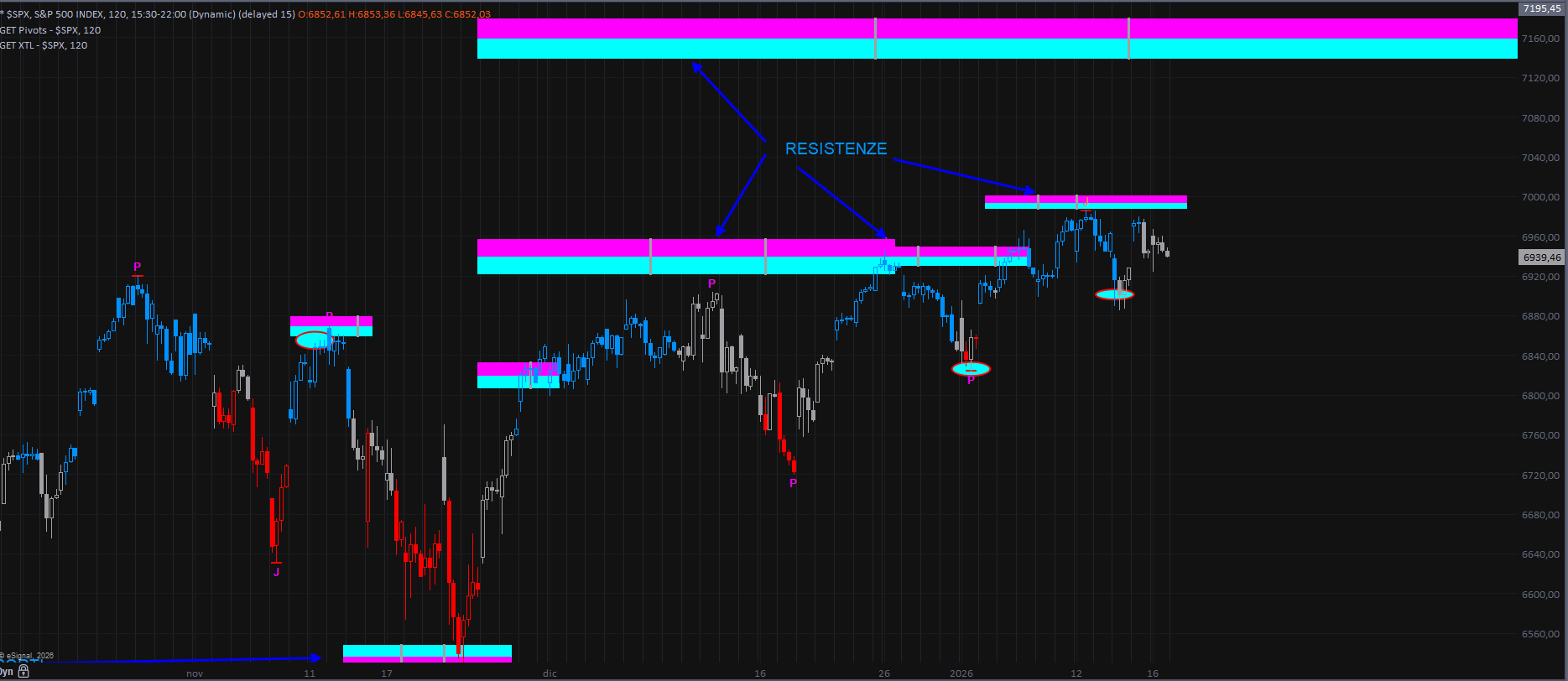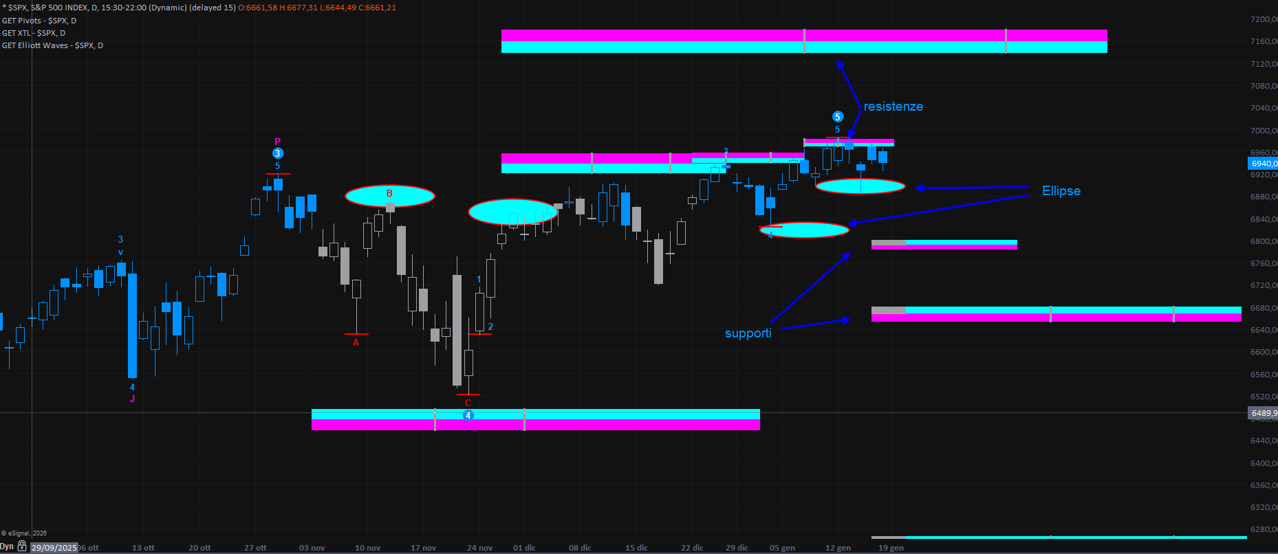 Una dinamica che trova conferma anche sul grafico più dettagliato a 120 minuti, dove si osserva il cambio di colorazione dell’XTL da azzurro a neutro, unitamente al sostegno del trend fornito dalle Ellipse.