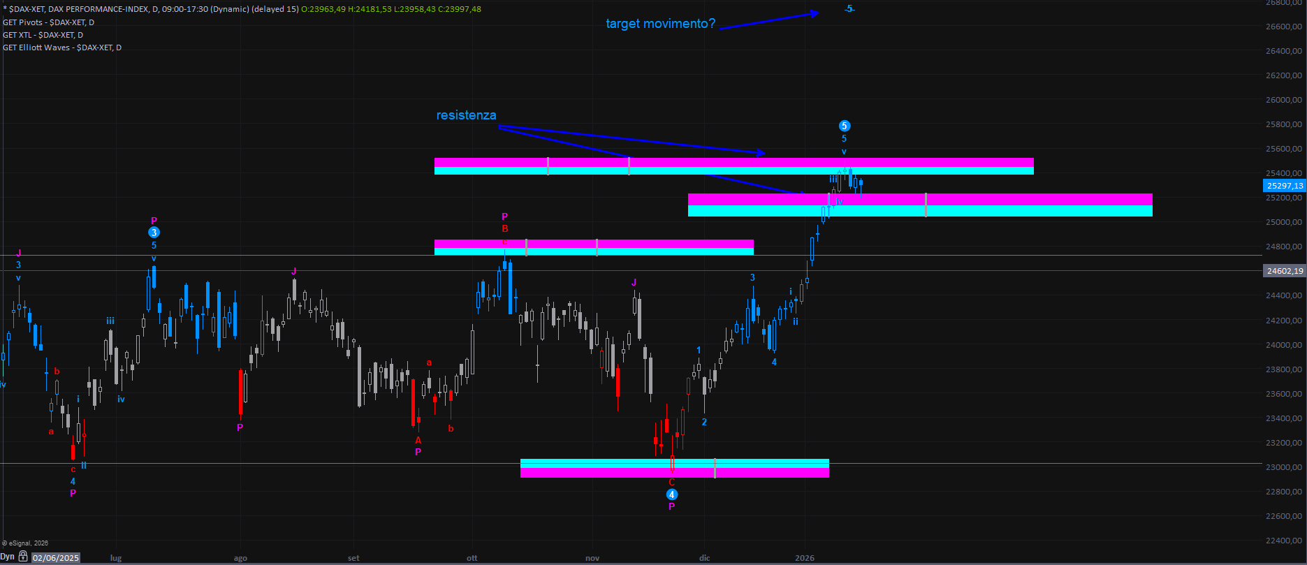 Il mercato ha sentito la resistenza collocata in area 25450 circa e sta ritracciando....