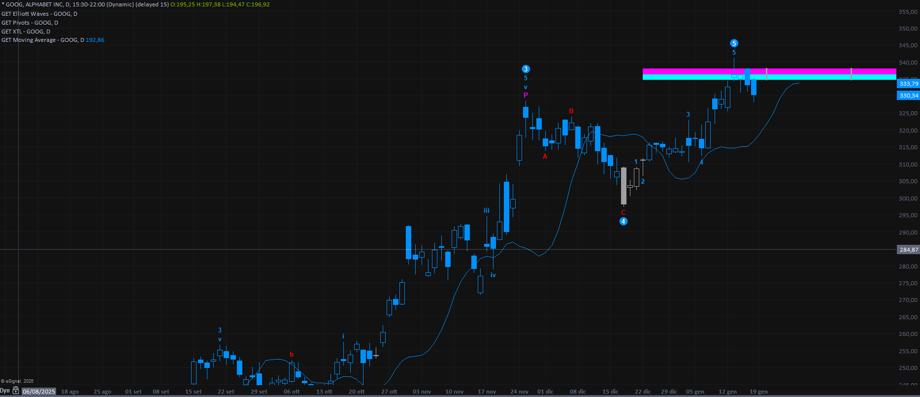 Dopo una fase piuttosto laboriosa, con la media mobile solo sfiorata e senza la conferma nella seduta successiva (che avrebbe fatto scattare lo stop), il titolo si sta finalmente dirigendo verso il proprio target, individuato in area 101 (MOB).