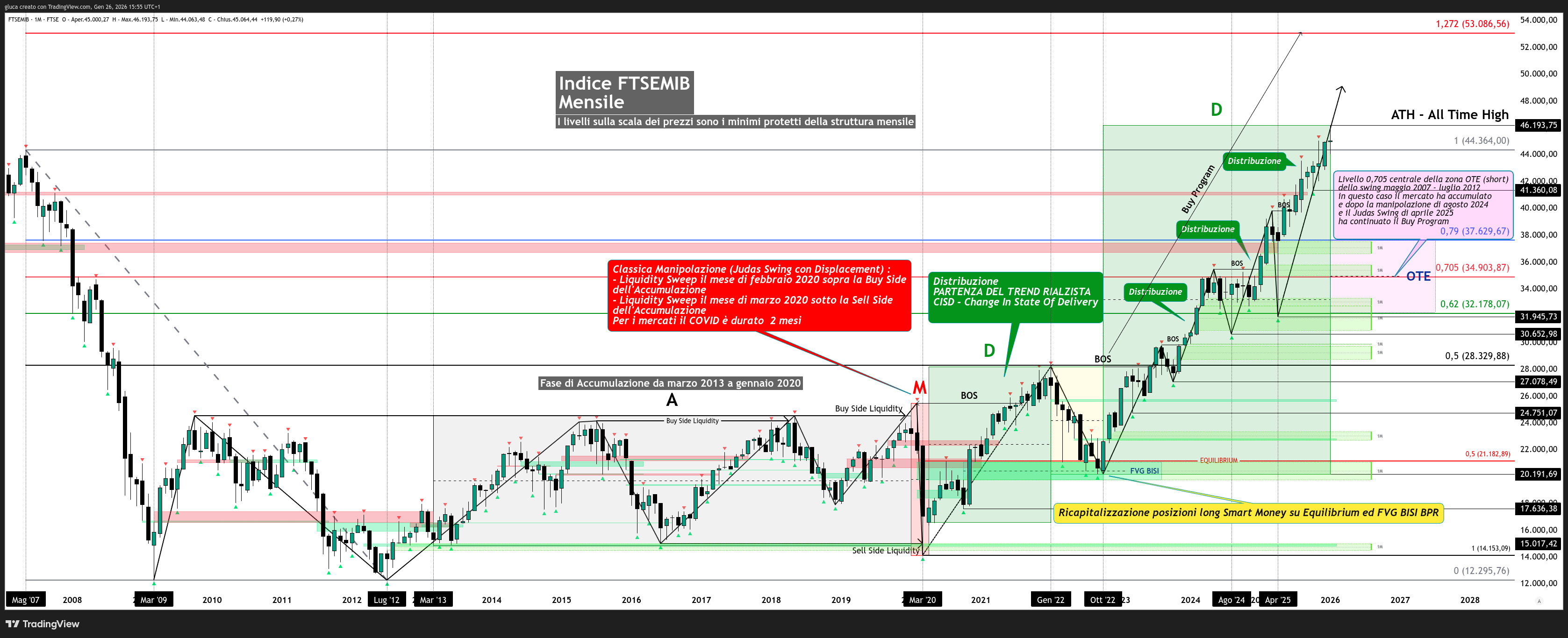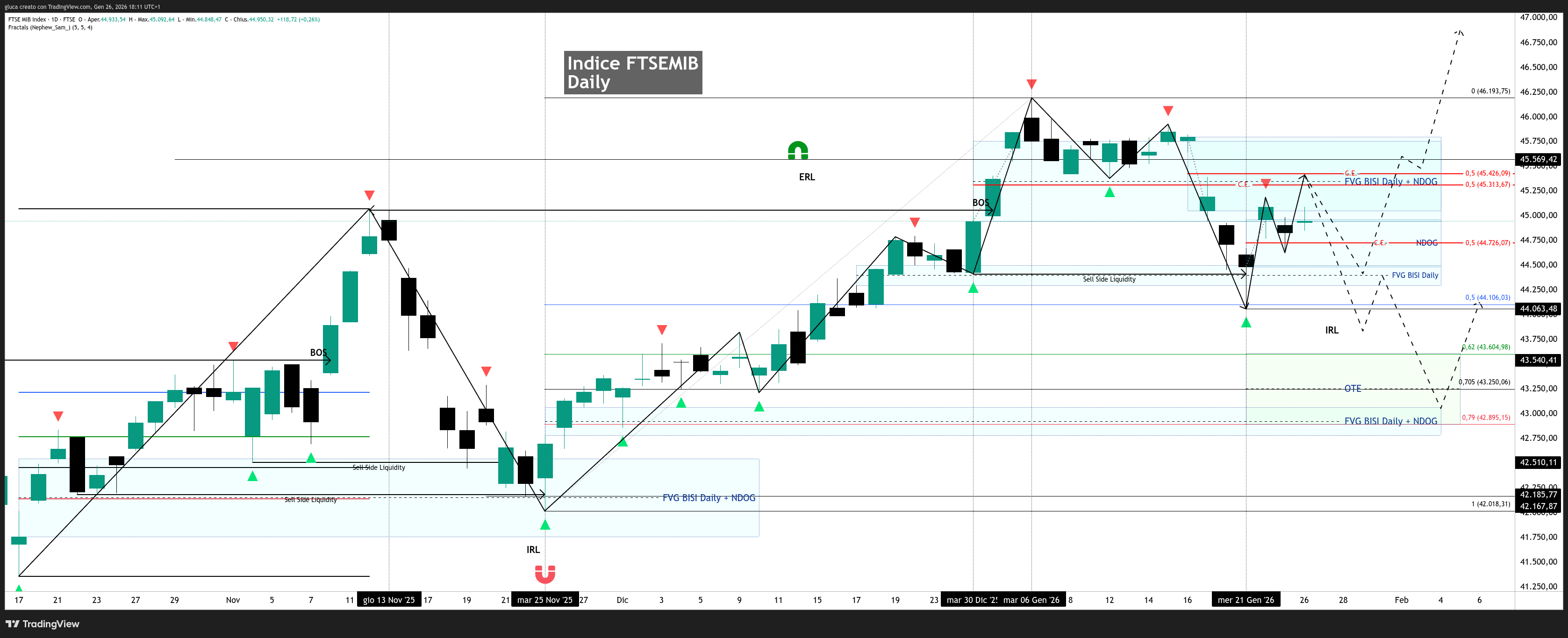 Un eventuale displacement ribassista con formazione di FVG SIBI sotto il minimo del 21 gennaio aprirebbe invece la strada verso una ricapitalizzazione più profonda in zona OTE, magari in confluenza con FVG BISI + NDOG, creando livelli di acquisto ancora più interessanti per il medio periodo.