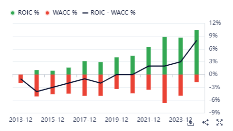 ROIC - WACC ampiamente positivo come testimonia il grafico qui sotto: