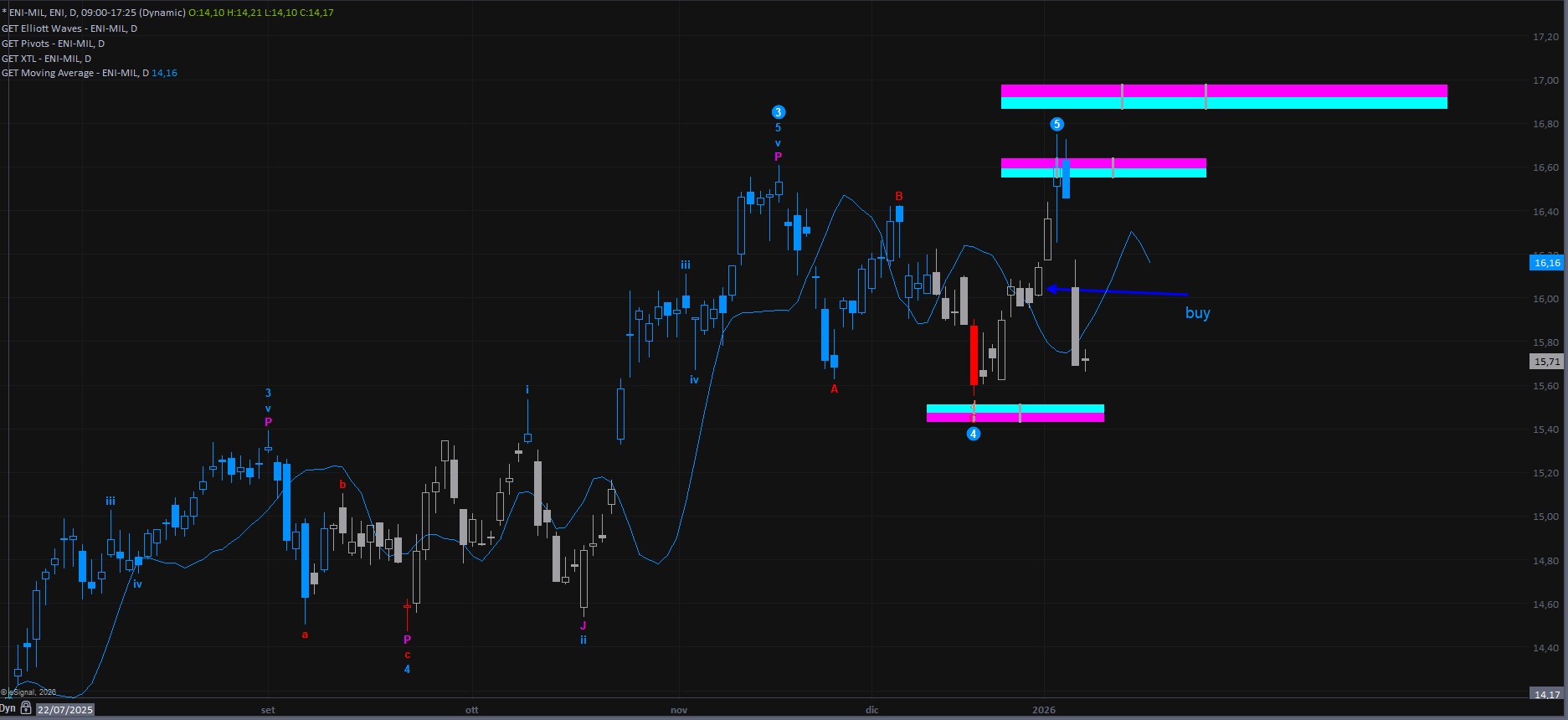 Il titolo ha raggiunto la MOB in area 16,60 circa, in coincidenza con il precedente massimo. Come sappiamo, la presenza di una MOB impone sempre attenzione, anche quando si tratta di un livello secondario (resta infatti più rilevante quella collocata sopra). In queste aree è quantomeno opportuno alleggerire la posizione ai primi segnali di indebolimento, come accaduto il 6 gennaio, evento che poteva già far presagire uno storno.
