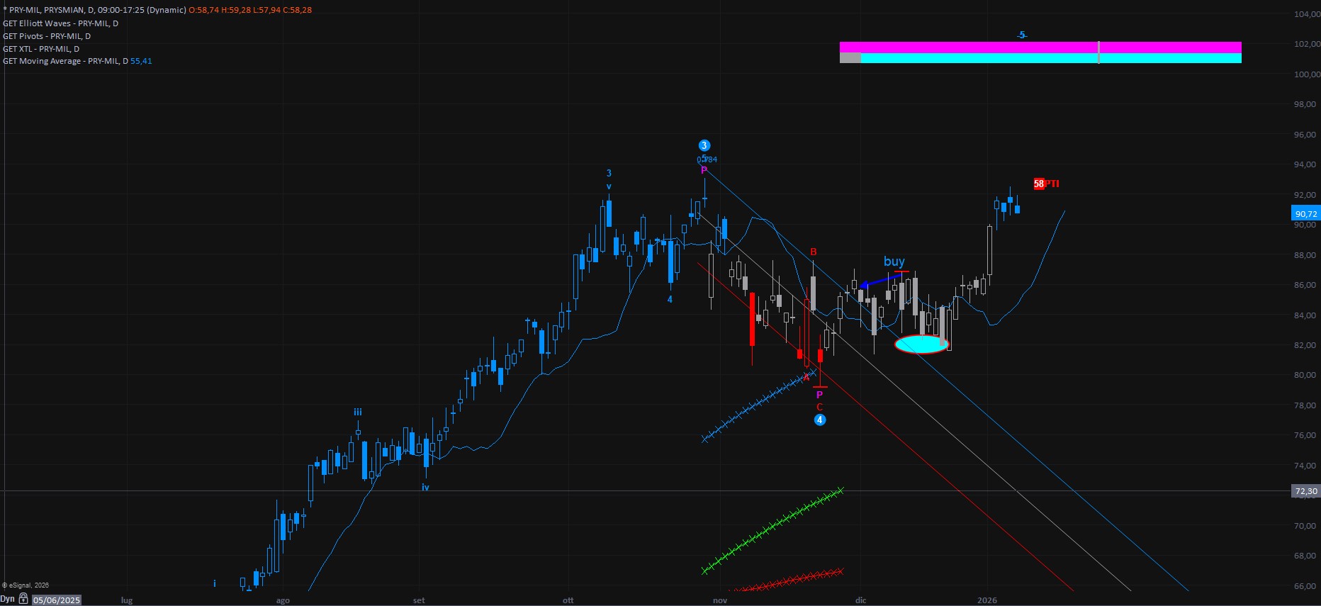 Il quadro generale non risulta compromesso, ma personalmente, avendo il titolo in portafoglio, sarei uscito. La successiva violazione al ribasso della media mobile aggiunge infatti un ulteriore elemento di cautela.