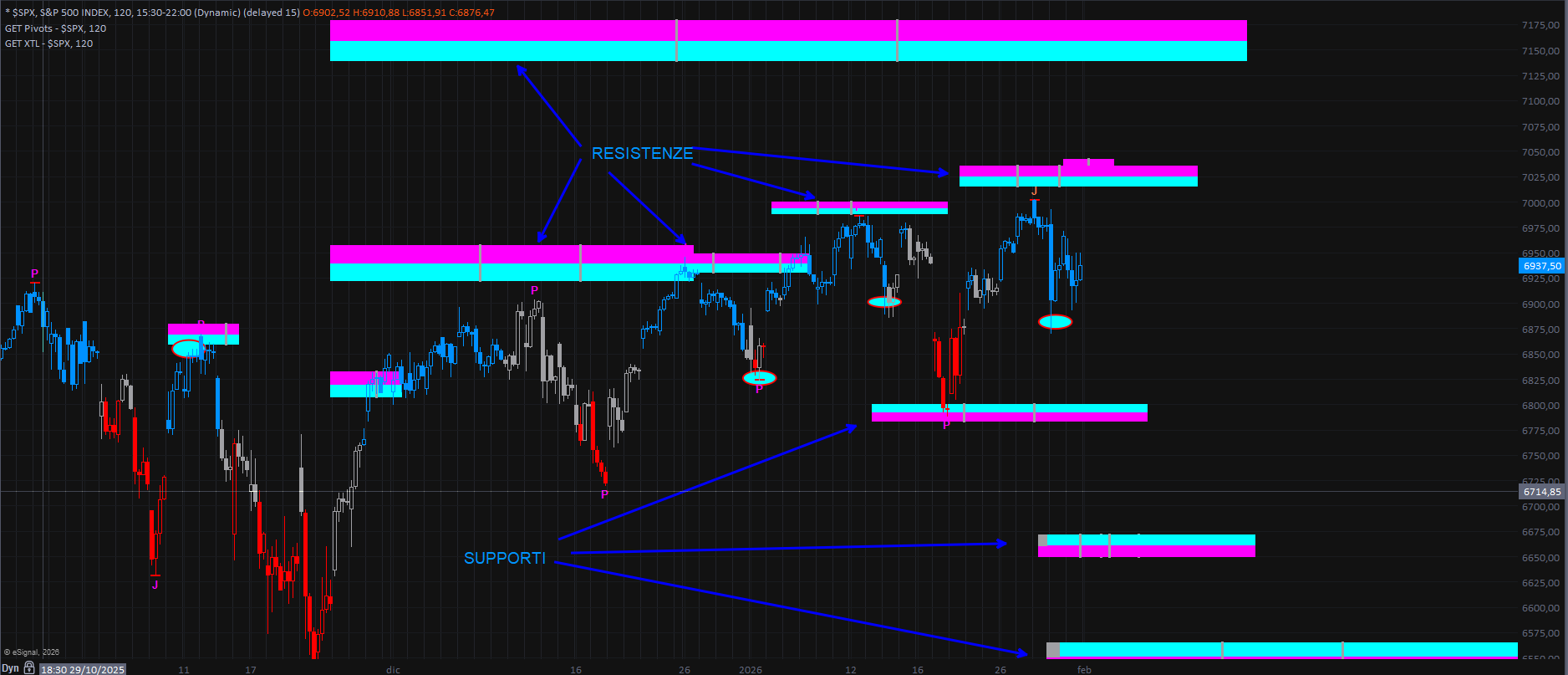 Sul versante opposto, il primo supporto degno di nota si conferma in area 6660, livello che sarebbe auspicabile non venisse violato. Nulla di realmente nuovo, dunque, rispetto a quanto evidenziato nell’analisi precedente.