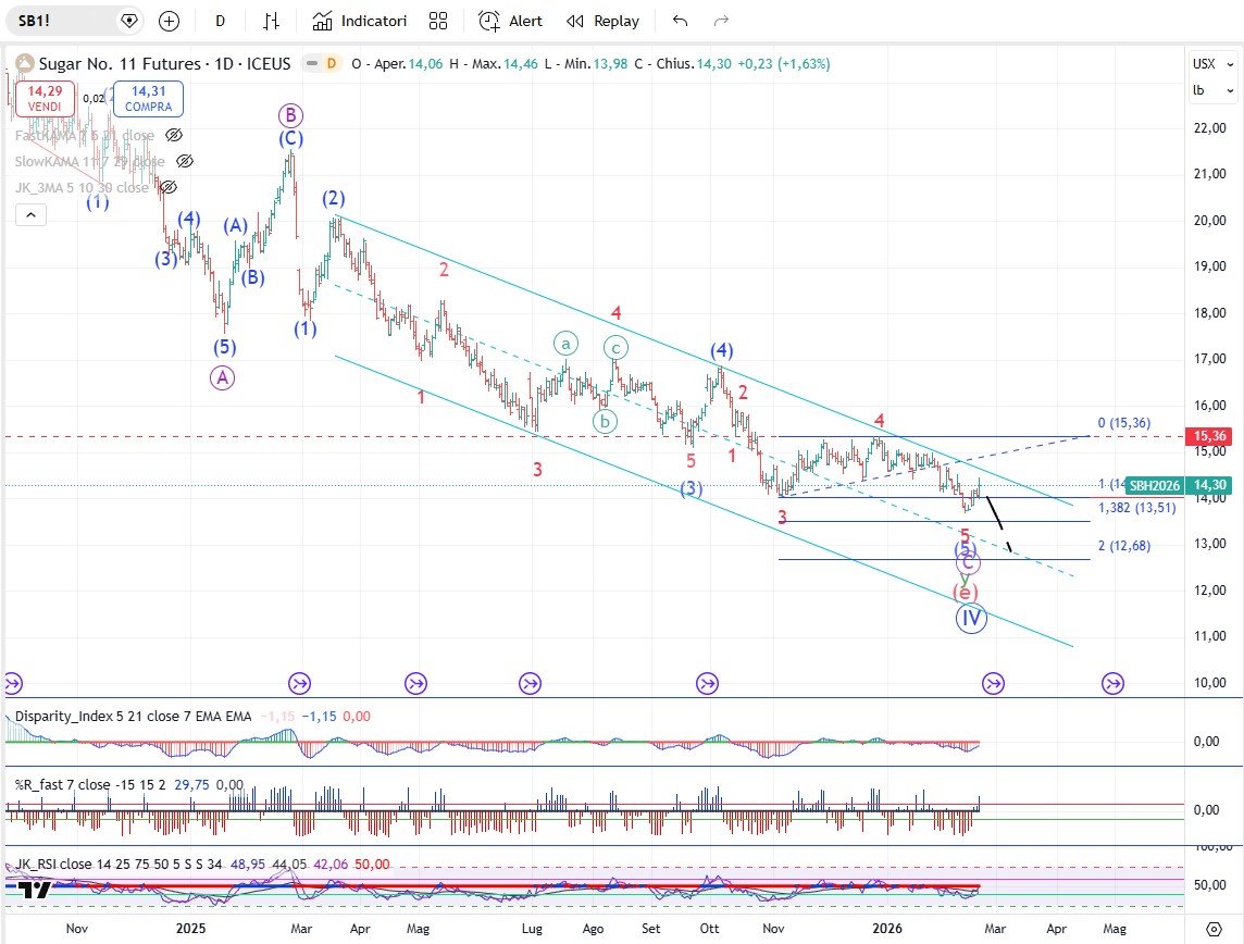 Previsioni di Borsa con le Onde di Elliott e Fibonacci Piano Bar : Focus Commodity del 21/02/2026