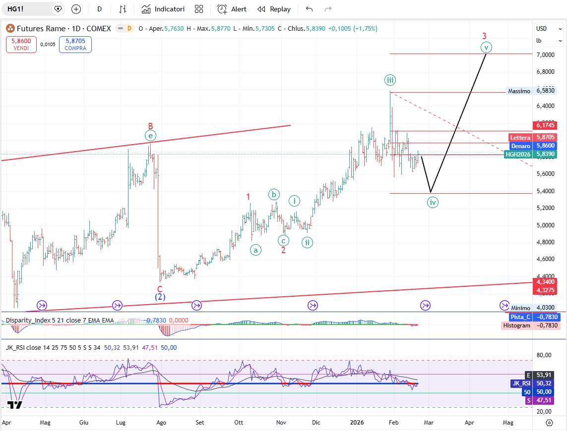 Prosegue la fase correttiva di onda [iv] sul rame. Da Seguire.