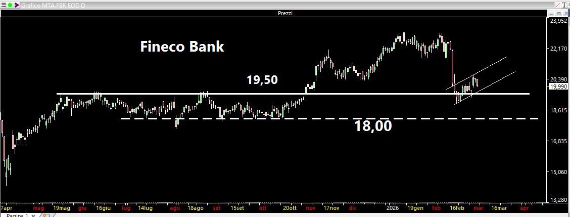 Per quanto riguarda il risparmio gestito, Fineco ha cercato/sta cercando il rimbalzo MA attenzione se tornasse nuovamente sotto i 19,50 euro: lo step successivo potrebbe essere verso i 18,00 euro.