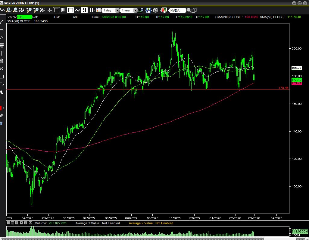 L'indice tech è appesantito dal comportamento di Nvidia che ha pubblicato i dati mercoledì sera e che è stata oggetto di copiose vendite che hanno portato il titolo dai 194 $ circa a 177$ nell'arco di un paio di sedute. Il tutto con conti record che hanno pure battuto le aspettative. Ad una domanda al CFO sul fatto di non fare buyback, lo stesso ha detto di voler utilizzare il free cash flow solo per continuare ad investire nel settore. I soldi che fa Nvidia sono di fatto soldi che spendono altre società SENZA AVERLI. In altri termini il suo guadagno deriva dal debito di altri che vogliono garantirsi le forniture di chips e questo costituisce di fatto un problema perché mancano i profitti delle aziende che le ruotano attorno. La spesa per i data center è di circa 500-600 miliardi di dollari che sono una sorta di manovra espansiva che inonda tutto il sistema. Nel momento in cui questa crescita si fermasse credo si creerebbe un grosso problema per la crescita americana.