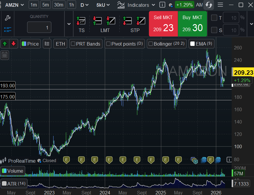 Amazon (AMZN): il titolo è già sotto pressione da settimane. Il supporto chiave da monitorare è area 191 dollari . Una chiusura settimanale sotto questo livello aprirebbe le porte a un test dei 170 dollari. Se volete giocarvi il rimbalzo, aspettate la tenuta di 191, ma con lo stop loss stretto. Sotto si va a prendere aria.STOP LOSS a rottura al ribasso del o dei livelli.