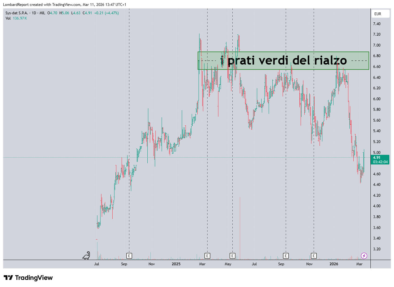 In sintesi, SYS-DAT è come un vino giovane che promette bene, ma che va gustato sapendo che berne troppo potrebbe dare alla tessta. Nell'attesa di un 2026 che si preannuncia altrettanto vivace, gli investitori dovrebbero cercare un punto di entrata tecnico su un grafico che per il momento congestiona. Finché i prezzi non portano via i massimi precedenti a cavallo di 6.5 euro.