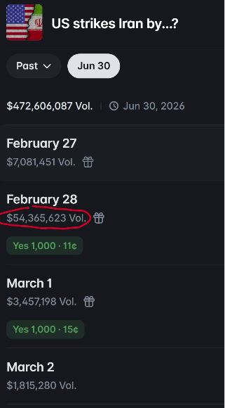 Quella che si chiude è stata certamente una settimana non semplice dal punto di vista operativo. Naturalmente per noi comuni mortali perché poi il modo per guadagnare in modo disonesto c'è sempre, basti pensare a quello che fanno Trump o suo figlio con cadenza quasi quotidiana. Tutto alla luce del sole e senza che nessuno faccia nulla (ma i software sono legati alle loro parole e se loro parlano e fanno alzare l'oil o i titoli USA (di competenza SEC) allora salirà anche la nostra Eni che è di competenza Esma o Consob). E se l'insider trading è illegale, la info la si passa agli amici oppure si legalizza il tutto creando siti dove si fanno scommesse sulla durata della guerra o sulle decisioni che verranno prese a livello politico. Basta seguire le poste di chi punta per sapere in anticipo come andrà a finire e anticipare il mercato. Guardate qui sotto cosa e quanto è stato puntato sull'imminenza del conflitto...con il giorno preciso!!!! Ripeto: tutto alla luce del sole, senza che nessuno intervenga.