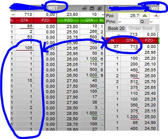 Cosa significa "subodorare la fregatura" ? Ebbene, guardate che modalità è stata utilizzata per ribaltare il book sfruttando la manipolazione dei software. Sono stati immessi al meglio 713 pezzi costituiti da ben 37 proposte di cui moltissime/quasi tutte solo da "1" pezzo....in altri termini si fa vedere al software che ci sono tantissimi in coda per comprare al meglio.