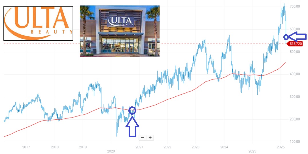 L’uscita dal titolo non rappresenta un giudizio negativo sulla qualità dell’azienda. Molto spesso il mercato agisce di pancia e "eccede" nelle reazioni. Data la qualità di ULTA BEAUTY non si può escludere che, come nelle altre occasioni, l'azienda riuscirà rapidamente a smentire le minacce immaginate da Dr. Market.
