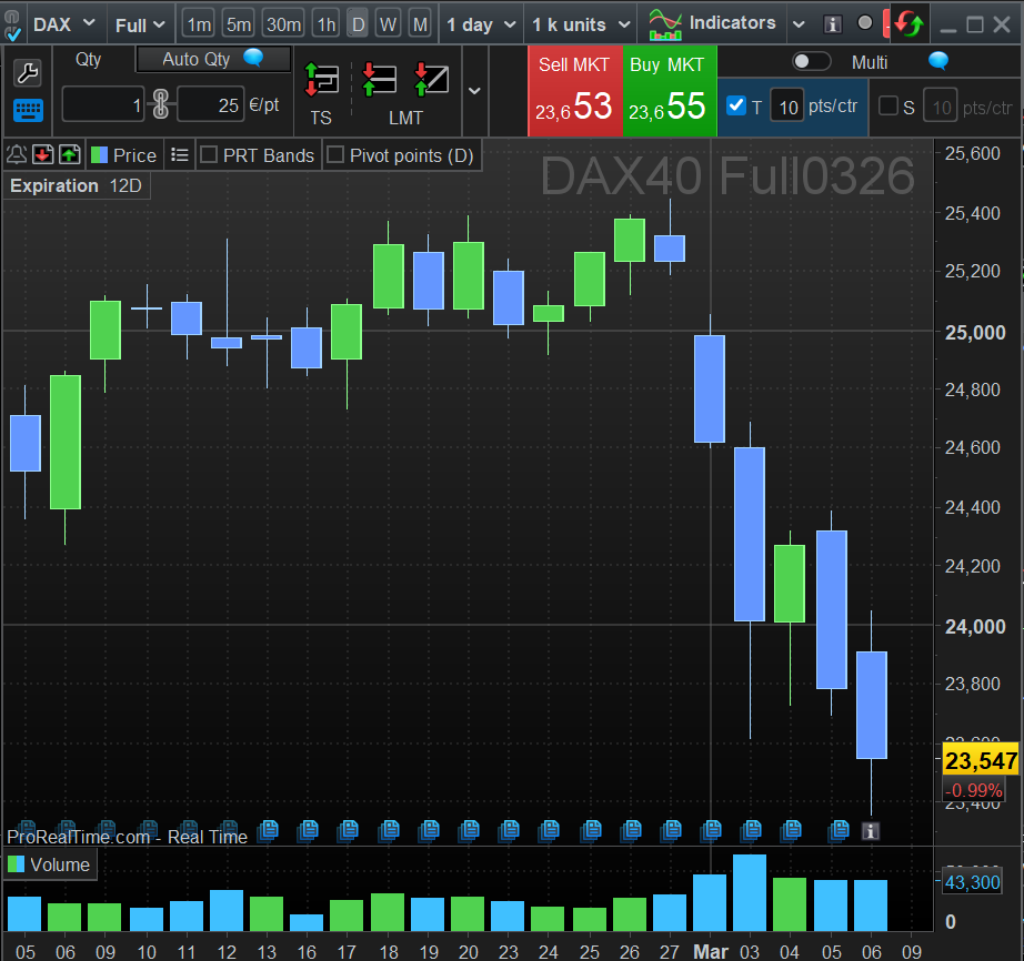 Guardiamo all’America: il Nasdaq ha mostrato una dinamica di forza sorprendente. Nelle sedute del 2 e del 5 marzo, nonostante le attese di una seduta debole, l'indice tech ha chiuso in positivo, dimostrando una capacità di assorbimento degli urti che lascia stupiti . Sembra quasi che il mercato statunitense veda in questa crisi un motivo in più per attrarre capitali in cerca di rifugio ed in effetti è così, l'attacco israelo-americano, con il dollaro naturale magnete che attira gli investitori per proteggersi, può avere molta convenienza per gli Usa, anche se il conto, come spesso accade, lo paghiamo noi europei ed infatti diverso è il discorso per l’Europa, e in particolare per il Dax tedesco e la sensazione è che sia solo l'inizio.