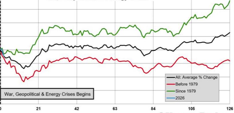 Procedendo per step ed in base a quanto ho scritto, credo che sia possibile una fase correttiva per le prossime settimane. In passato dall'inizio di tensioni geopolitiche-guerra-crisi energetica l'S&P ha trovato un bottom entro un mese circa dall'inizio delle problematiche come mostra questo grafico: