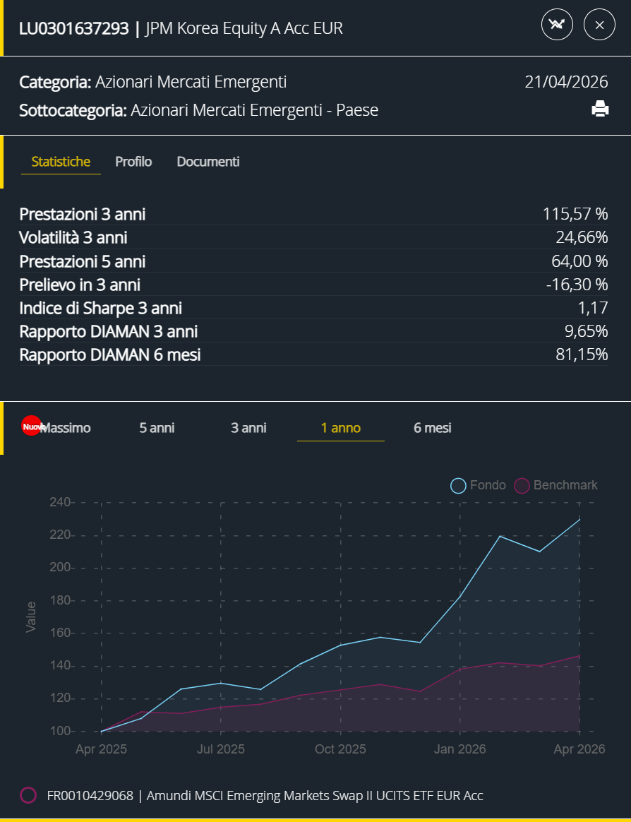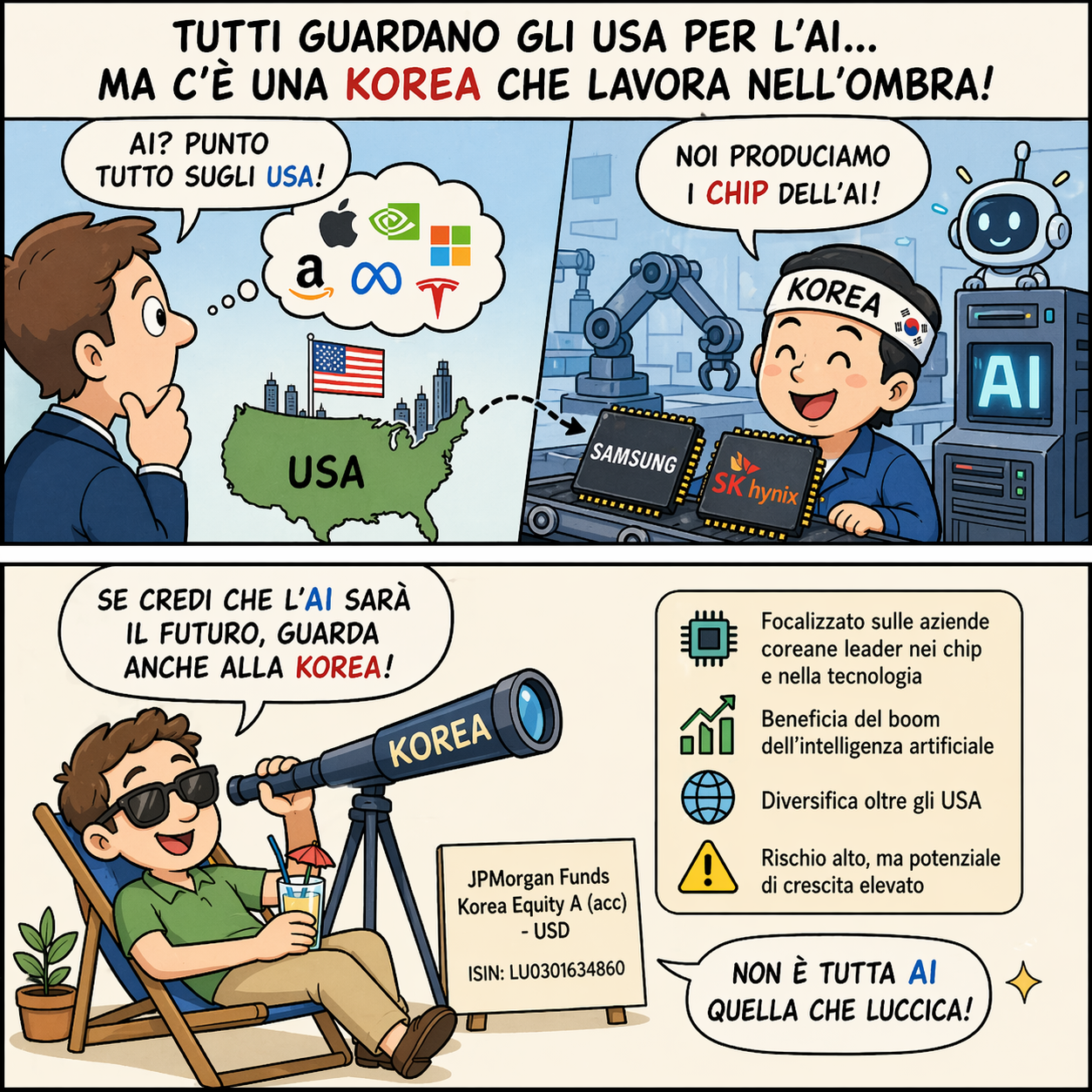 Il JPMorgan Korea Equity è un fondo estremamente potente ma fortemente ciclico. La sovraperformance degli ultimi anni è reale, ma deriva in larga parte dal contesto favorevole del settore tecnologico e dell’AI.