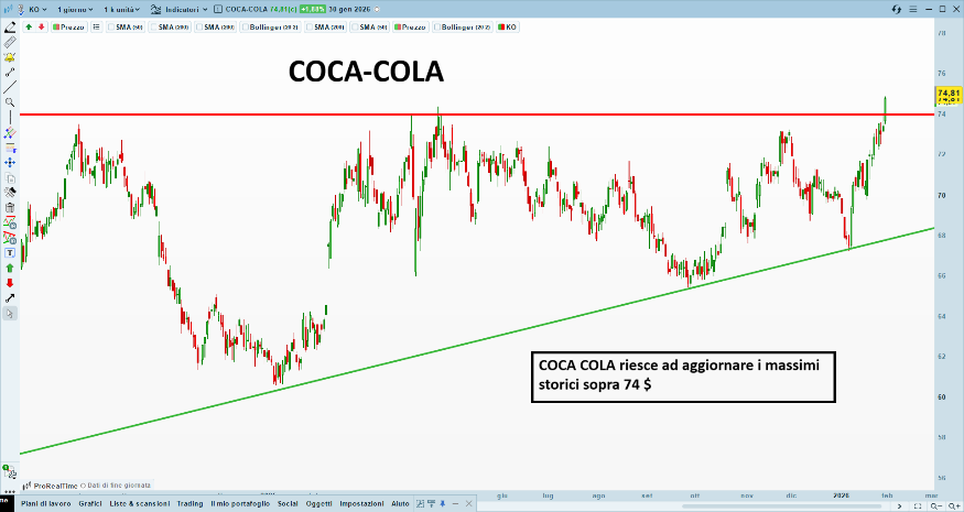 Per esempio COCA COLA che aggiorna i suoi massimi storici sopra 74 $.
