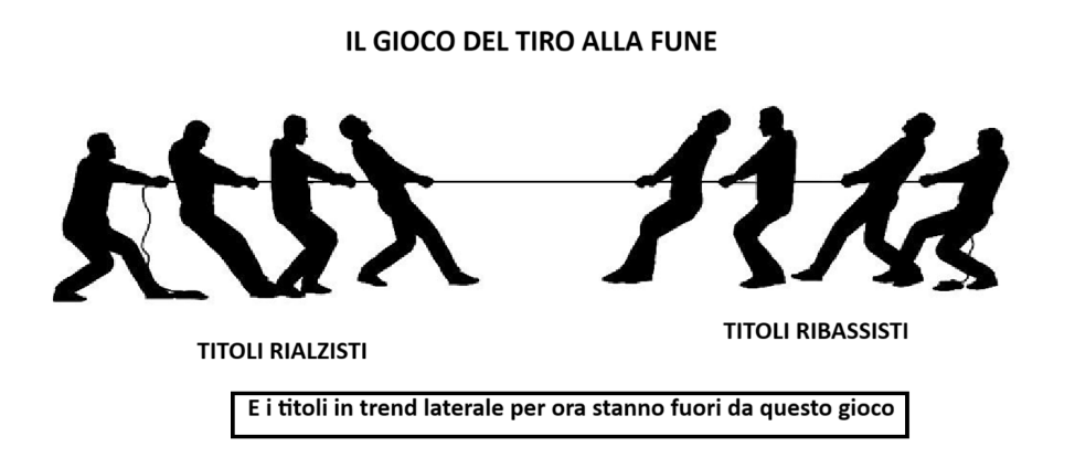 Ma torniamo agli indici. Immaginiamo il gioco del tiro alla fune. Da una parte ci stanno i titoli rialzisti e dall’altra parte quelli ribassisti. Quando le due forze si eguagliano l’indice sta fermo o si muove di pochissimo.