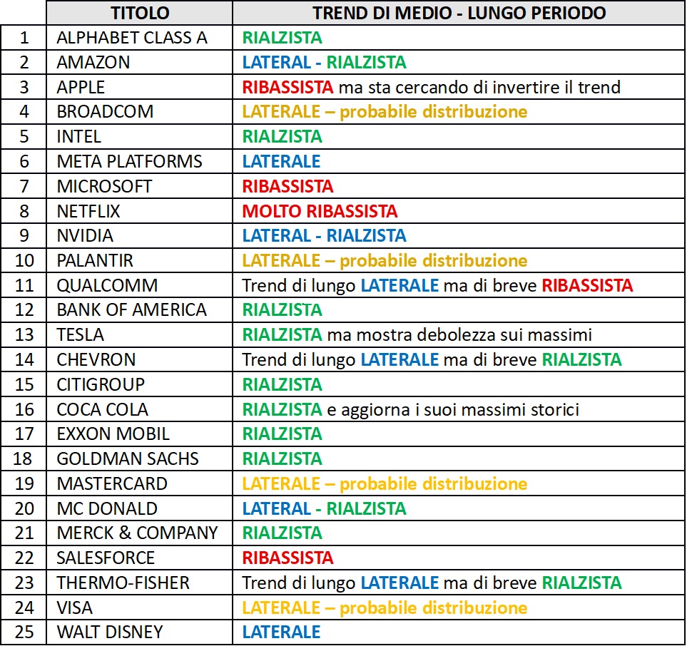Passiamo alla seguente tabella di alcuni dei titoli più famosi del mercato americano (tutti sarebbe impossibile perché sono migliaia!).