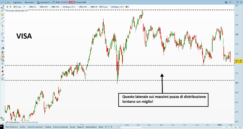 Anche VISA mostra una chiara distribuzione sui massimi storici.