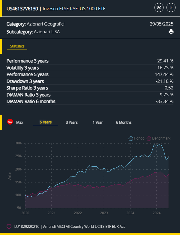 E non ci chieda cosa fare ... se però deve comprare un ETF Nasdaq perché glielo ha prescritto il dottore questo è l'ETF giusto per farsi un bel bagnetto di rischio ... ma il rendimento è quello che vedete.